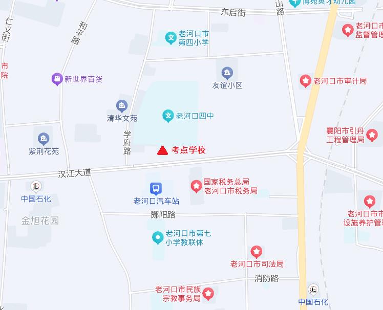 老河口市第四中学(地址:老河口市学府路10号。从汉江大道南大门进入考点。)
